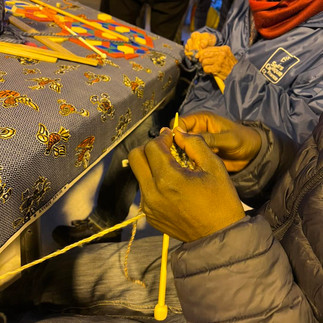 Another group of younger men then settled at the table, noting the knitting taking place. It soon transpired that they had been taught knitting at school. Joined by an older Calais woman we were reminded of the words spoken by a man who had used the table many times previously: “The Community Table is like my grandmother’s house”. Within the busyness of the larger space, the knitting circle felt homely and relaxed, indeed it felt a little bit magical.
