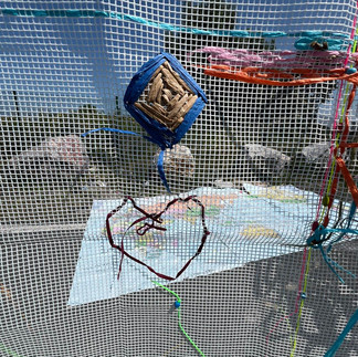 Engaging people in this complicated setting with art materials, play and conversation serves a helpful function with our partners as an ongoing monthly routine and meeting place from either side of the Channel. By the end of the afternoon, the small patch of road felt once again more akin to an outdoors front room with the mobile loom and gentle weaving activity offering a little bit of domesticity in this setting, and a frame in front of which young men played Jenga, encouraged by the interpreters and others gathered around.